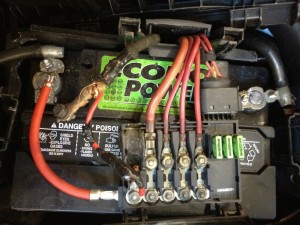 I had lots of help from friends this week. This picture came from a fellow VW tech. This car was towed into his dealer with the following concern “Customer states vehicle still will not start after battery replacement”. If you are not familiar with VW batteries, you might not see the issue right away.